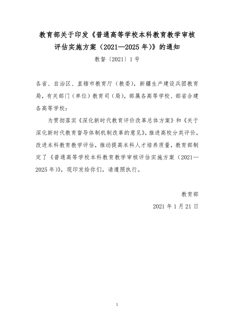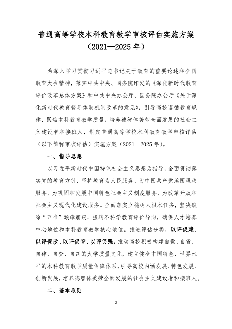 《普通高等学校本科教育教学审核评估实施方案(2021-2025年)》