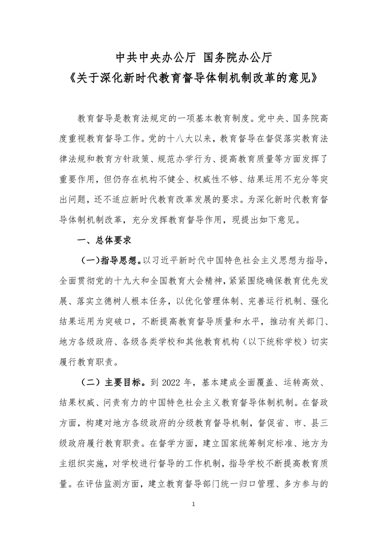 中办国办《关于深化新时代教育督导体制机制改革的意见》